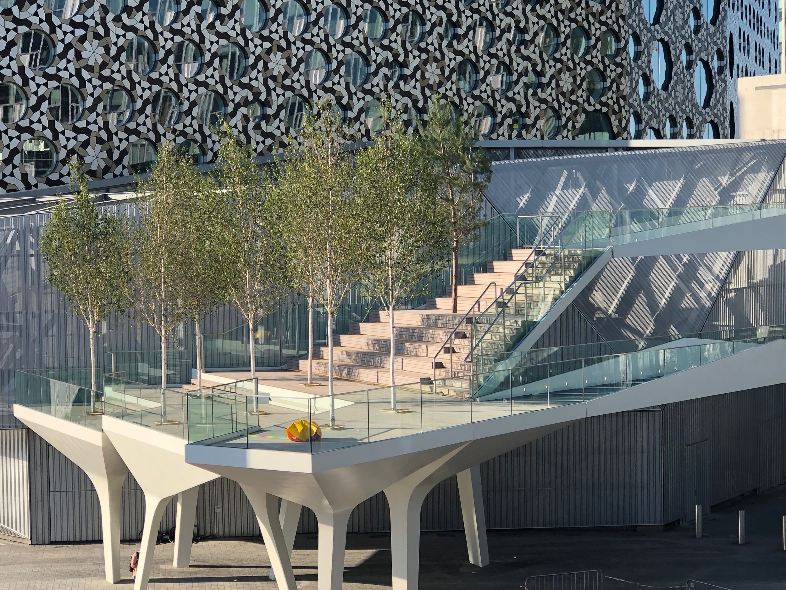 The Tide serves as outdoor gallery. Public Art include works by Damien Hisrt, (‘the Mermaid’ and ‘Hydra & Kali’), Alan Jones (‘Head in the Wind’) and Morag Myerscough (‘Siblings’). In 2022 Liz West wrapped the Tide’s glass balustrade in vibrant, shifting colour made from pigment-injected polyester.