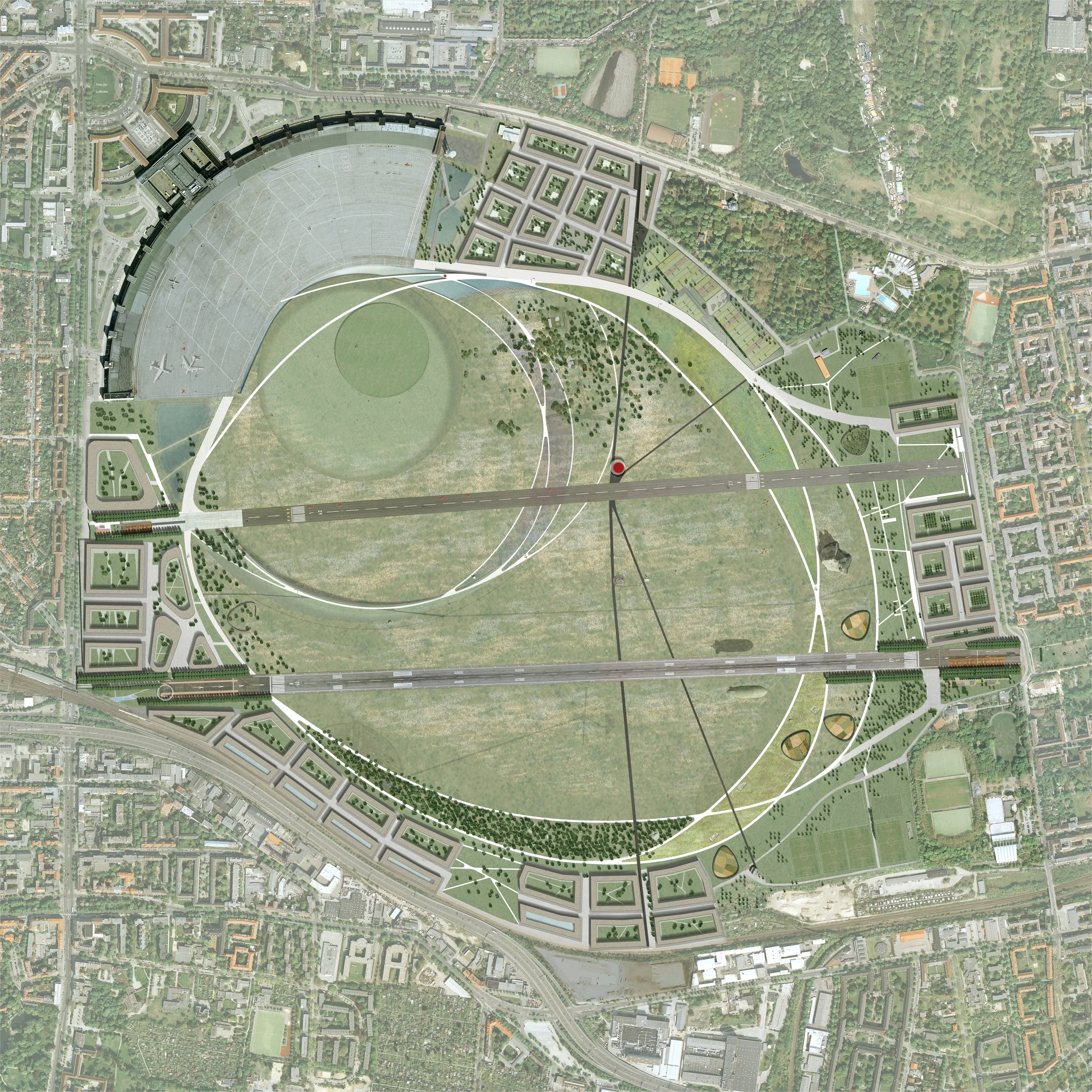 Rem Koolhaas once stated: “Urban voids are the principal lines of combat for people of interest in the city”. This has been exactly true for Tempelhof Freiheit. As result of a public referendum the construction of the competition winning design came to a grounding halt.