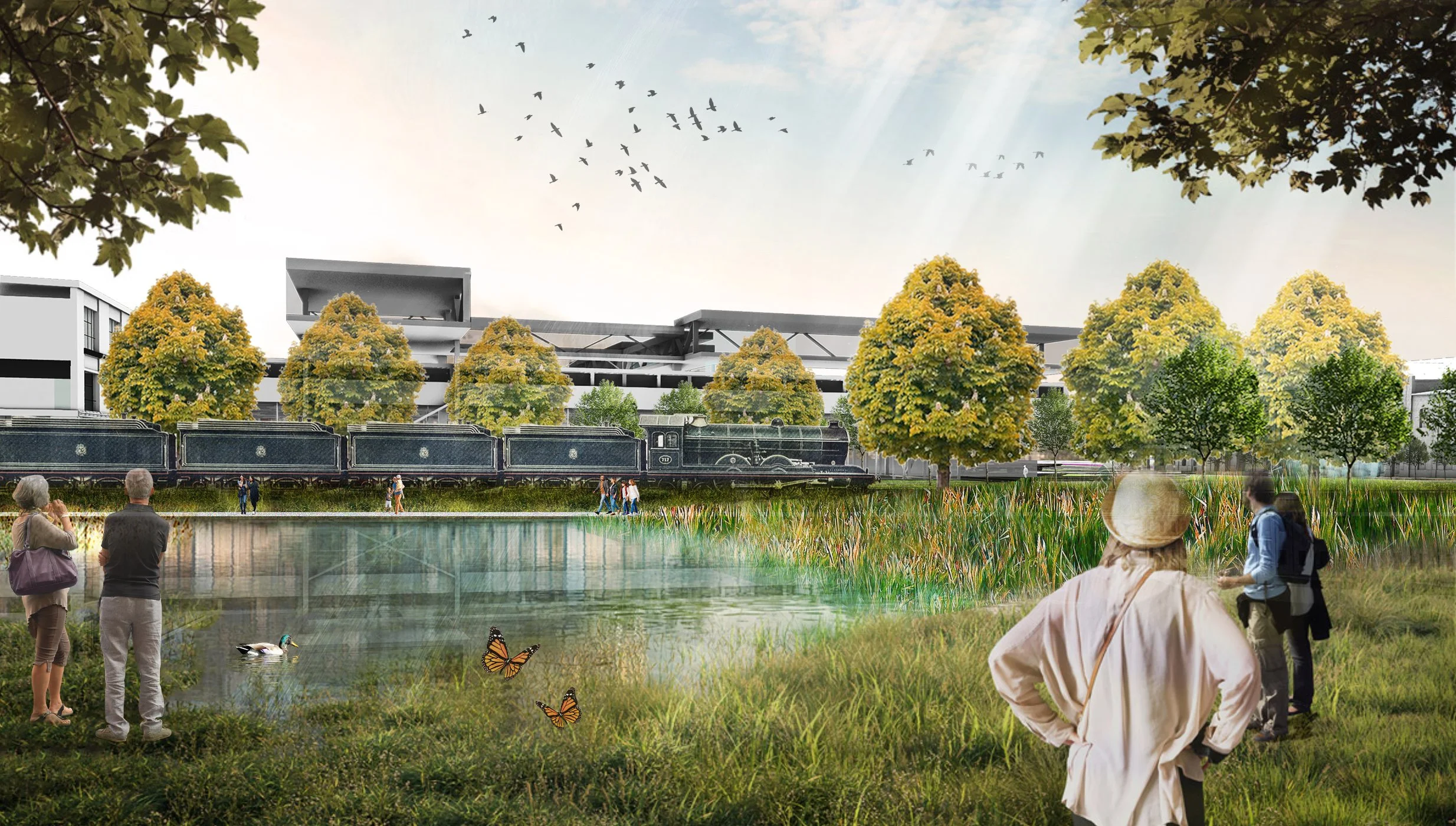 GROSS. MAX. in collaboration with Diller Scofidio + Renfro Architects won an international design competition for the New Hungarian Museum of Transport in Budapest in a disused railway carriage works. The New Museum of Transport occupies a unique location within the city, and country, as part of a network of connectivity. The new museum is contextualized within a patchwork of native vegetation representing the enormous variety of meadow and forest ecotypes in Hungary. Each patch is an exemplar of a specific soil condition, providing the corresponding growing conditions of plants and species representing the wide variation of geographic regions in Hungary, such as the Hungarian Plain, the Carpathian Basin, and the fluvial sediments of the Danube. The increased biodiversity of the site allows for interpretation and education whilst providing an increased sense of spatial definition between the various programmatic activities of the site. New trees are carefully integrated amongst existing trees to create a contemporary arboretum. The vegetation will mitigate urban heat islands and create a variety of micro-climate conditions providing shade, shelter, and humidity as well increase the seasonal experience and provides an intensification and diversification of the ground plane. The integration of plaza, park, and built form along with the juxtaposition between natural and artificial conditions creates a dramatic setting and new typology of public space. The public plaza and museum park reconcile the wider landscape of sinuous railway lines and the urban grid of the industrial buildings. The plaza extends the urban grid of the New Hall and gradually ‘dissolve’ in the museum park, which extends into the wider landscape with bold sweeping lines of tree planting and unfolding meadows of wildflowers. Here, architecture and landscape are integrated in a seamless continuum. This concept could frame and integrate the entire site as cultural campus and provide a missing link and ‘ecological stepping stone’ to the nearby Népliget Park.